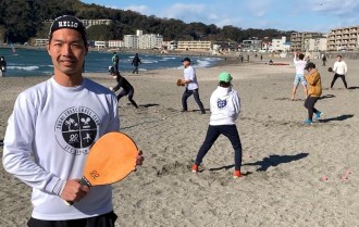 ペアで落球させないようボールを打ち合うフレスコボールはブラジル発祥のビーチスポーツ。逗子海岸でも活動が認められ、2019(平成31)年3月、日本フレスコボール協会(東京都世田谷区)が地域クラブ「逗子フレスコボール(以下、ZFC)」を設立した。