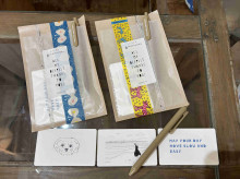 以前よりこだわってきた祝儀袋・香典袋は棚1つ分、種類を増やした。特に手拭いの祝儀袋が喜ばれているという。オリジナルの祝儀袋も職人に依頼して作り、のしを折り鶴に、水引は逗子の海をイメージした「波水引」にした。