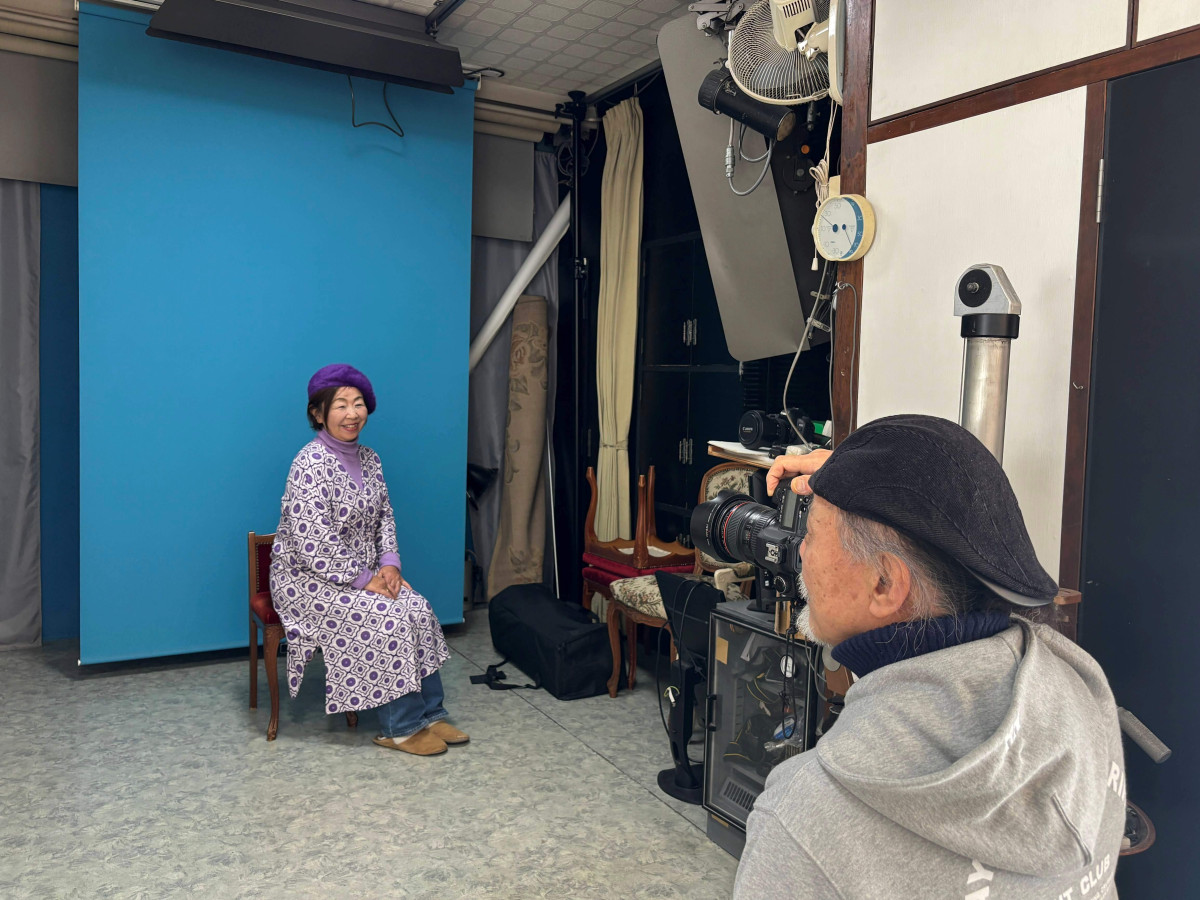 遊亀子さんを撮る徹さん。閉めたスタジオで