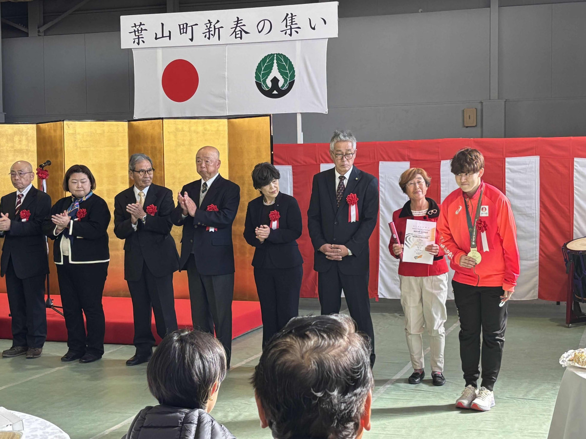 葉山町出身のデフ(聴覚障害者)バレーボール日本代表、中田美緒さんが1月7日、同町役場を訪れ、山梨崇仁町長に「東京2025デフリンピック」優勝を報告した。