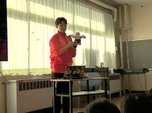 葉山町出身のデフ(聴覚障害者)バレーボール金メダリストの中田美緒さんが3月12日、母校・長柄小学校(葉山町長柄)を訪問し、児童・保護者らと交流した。