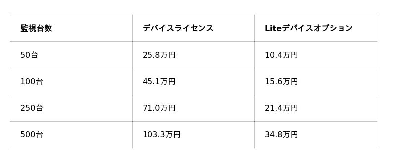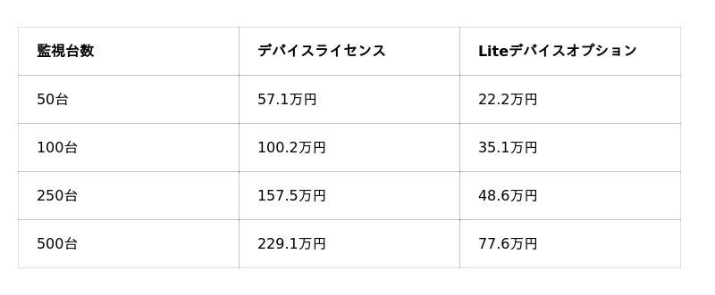 1. 通常のデバイスライセンスの約3分の1の価格で、末端デバイスの監視を実現