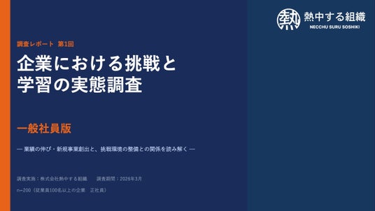 個人と組織が「熱中できる状態」を創出することを目的に、組織開発・人材育成・コンサルティング事業を展開する、株式会社熱中する組織(本社:東京都港区、代表者:安澤 武郎)は、従業員100名以上の企業に勤める一般社員200名を対象に、「企業における挑戦と学習の実態調査(一般社員版)」を実施しました。