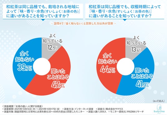 「和紅茶は同じ品種でも、収穫時期によって『味・香り・水色(すいしょく:お茶の色)』に違いがあることを知っているか」と尋ねたところ、下記のような回答結果となりました。