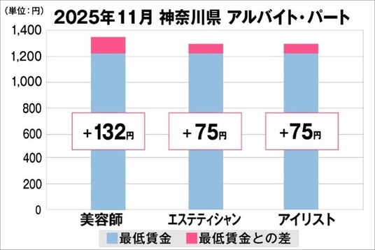 神奈川県の美容業界における採用時給料に関する調査結果(アルバイト・パート)2025年11月美プロ調べ