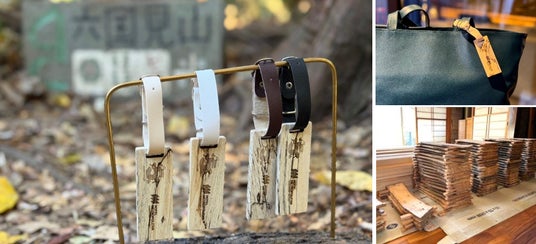 「北鎌倉湧水ネットワーク」より、六国見山の維持管理活動で間伐された木材(榎)を譲り受け、職人の手によって一つひとつ丁寧にバゲージタグとして再生させました。