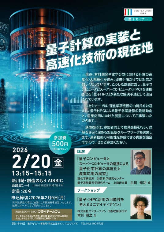 2026年2月20日(金) 、理化学研究所 計算科学研究センター 量子系物質科学研究チーム 上級研究員 白川 知功 氏をお招きして、量子HPCによる量子化学計算の最新動向と、産業応用に向けた展望についてご講演いただきます。