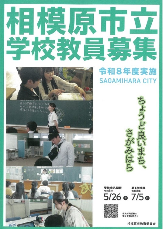 相模原市では、このたび令和8年度の市立学校教員採用候補者選考試験の実施を公表し、受験者の募集を始めました。温かな仲間に囲まれ、子どもと共に成長できるこの街で、教員として一緒に働いてみませんか。